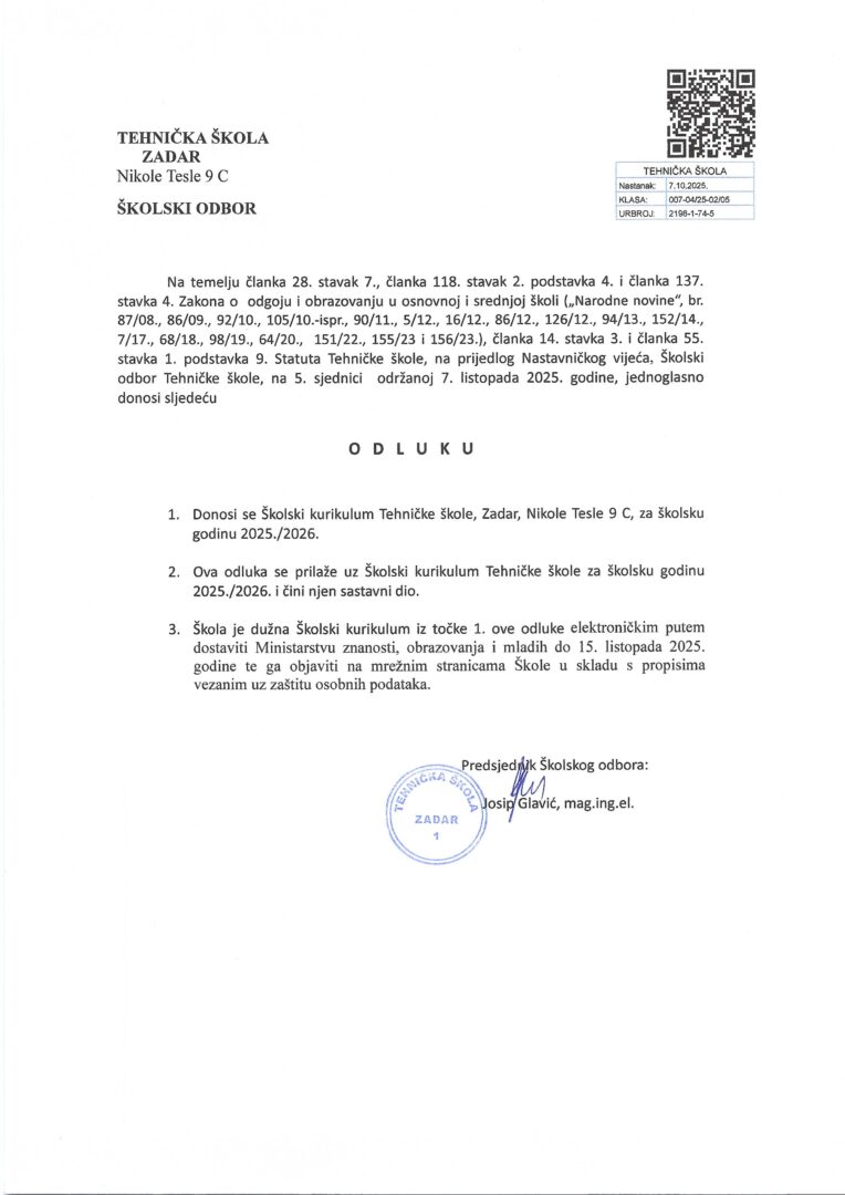Odluka_Skolski_kurikulum_Tehnicke_skole,_Zadar_2023-24